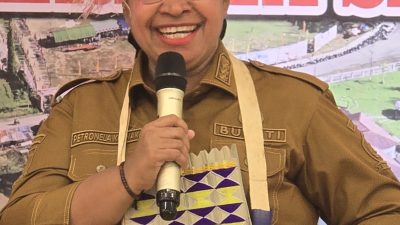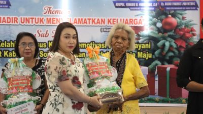 POJOKSORONG-Bupati Sorong Selatan Petronela Krenak,SSos M.TrAp menghadiri acara Pelantikan Badan Pengurus Ikatan Keluarga Besar Moswaren Raya seTanah Papua yang berlangsung di Kantor Kampung Moswaren Distrik Moswaren Kabupaten Sorong Selatan Provinsi Papua Barat Daya, Minggu (25/1/2026).