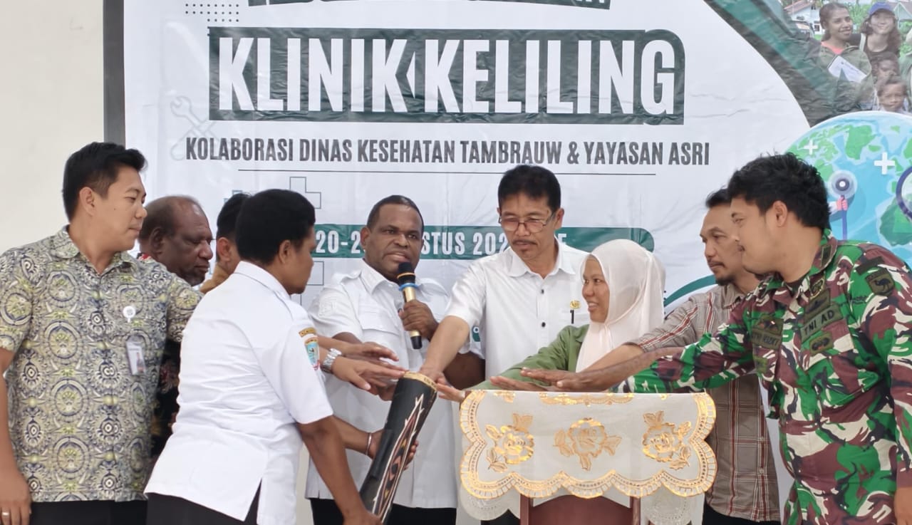 TAMBRAUW – Bupati Tambrauw, Yeskiel Yesnath, meresmikan program Klinik Keliling yang akan melayani empat distrik di Kabupaten Tambrauw. Launching berlangsung di Rumah Sakit Pratama kelas D, Fef, dan dihadiri langsung oleh perwakilan Kementerian Kesehatan serta Yayasan Alam Sehat Lestari (ASRI) sebagai mitra kerja sama pemerintah daerah.