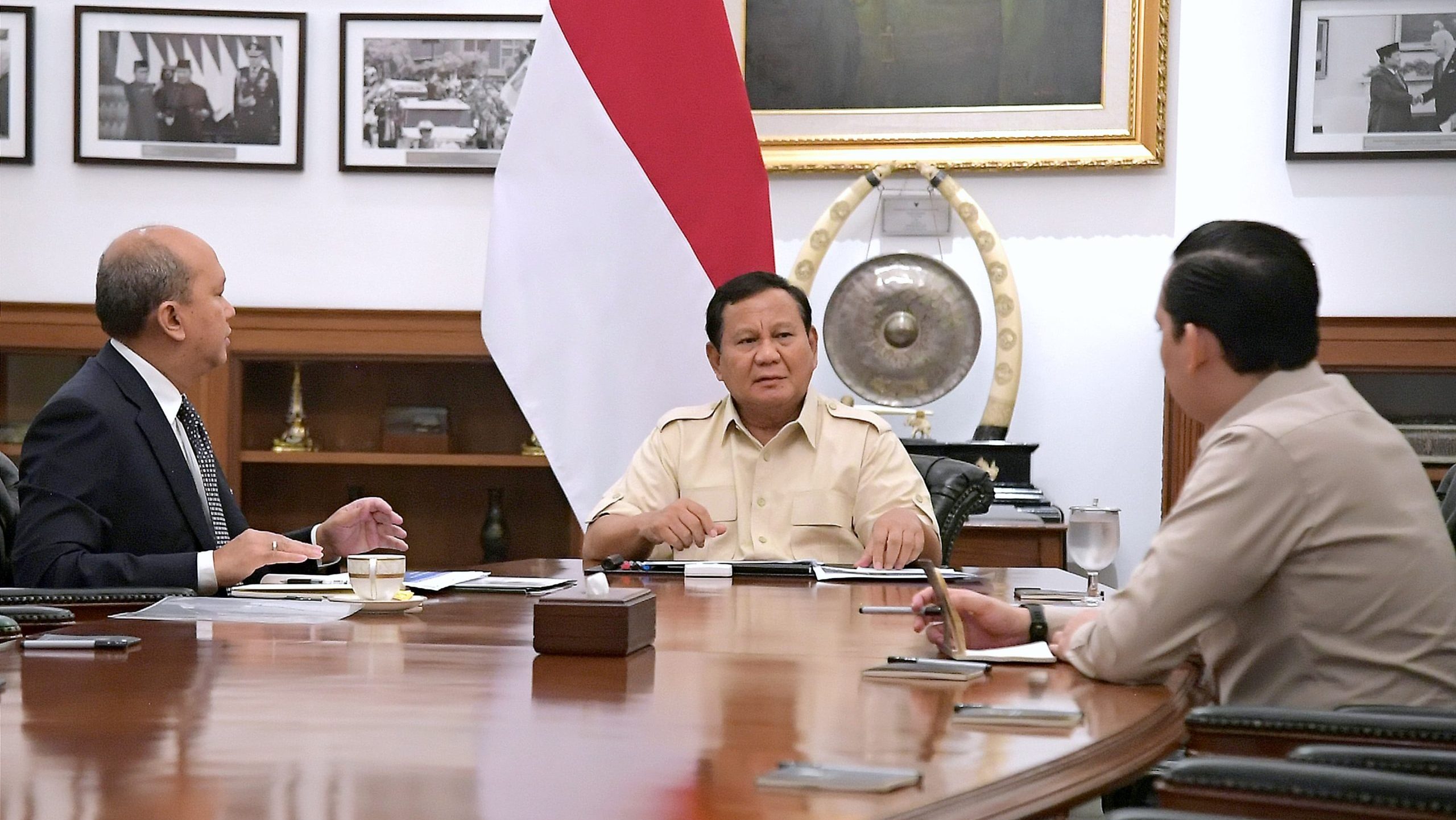 Turut hadir dalam pertemuan tersebut adalah Menteri Sekretaris Negara Prasetyo Hadi dan Sekretaris Kabinet Teddy Indra Wijaya.(BPMI Setpres)